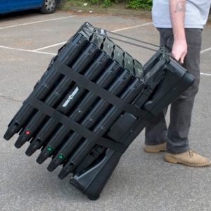 The Rover Stand™ is designed as a highly versatile stand for the DemiMod™ and MiniMod™ charges. One stand consists of two ends which clip directly onto the endcaps of the charges. The charges are free to rotate through 360 degrees in order to be aimed. One of three sides of the Rover Stand™ can be placed on the ground to give the charge a selection of three ground clearances – approx 2cm, 10cm and 15cm – to facilitate accurate aiming.